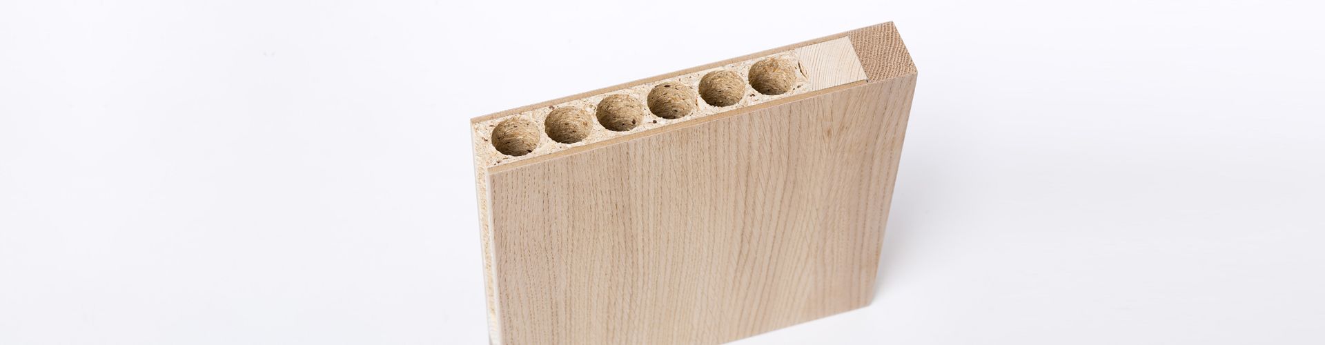 As for the honeycomb doors, it is possible to compress the frame and spliced veneers in a thickness of 0.6 to 0.9mm.  Doors are glued with powdered urea formaldehyde glue which has low permeability into the veneer and therefore it is possible to stain them with water and solvent wood stains.  The maximum size of the door panel is 1250 x 2500mm with a panel thickness of 38 to 43mm.  Door dimensions are produced to meet the customer’s requirements plus an additional 10mm in height and width.  This unfinished door is designed for further processing and surface finishing.